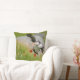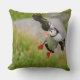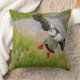 Travesseiro decorativo com um vôo do pássaro do papagaio-do-mar atlântico com as asas espalhadas antes de aterrar na ilha de Runde na costa atlântica de Noruega.