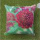 Adorável travesseiro de Crimson Blossoms para quarto, sala de estar ou qualquer quarto na casa que precise de um pouco de cor e capricho. Fotografada por Jeanne René, artista da California Bay Area.
