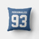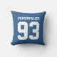 Um travesseiro decorativo de camisa de esporte azul personalizado. Cor de fundo personalizável. Ótima decoração de casa para homens, mulheres e crianças. Crie sua própria almofada de jardim com o nome da equipe escolar ou citação engraçada para beisebol, basquete, vôlei, hóquei no gelo, softball, futebol, futebol etc. Design duplo. Legal ideia de presente para adolescente ou garota, jogadores, fãs, treinadores etc. Condecorações exteriores personalizadas para o quintal, pátio ou terraço. Condecorações à prova do tempo.