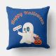 Feliz Travesseiro decorativo de Halloween com um fantasma fofo dizendo "Trick or Tratat!"