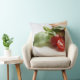 Travesseiro decorativo com a comida italiana saudável que consiste em um sanduíche do panini e um tomate, umas folhas verdes da manjericão e um mozzarella em um fundo branco.