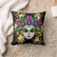 Esta travesseiro decorativo é mostrada a preto com uma impressão de Máscara Mardi Gras festiva. Personalize este item ou comprar como está.