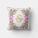Travesseiro decorativo de boho com monograma floral/foliar. Ramo colorido com flores roxas, azuis, cor-de-rosa, ouros, verdes e de hibisco rosa. monograma do ouro e nome roxo. Fronteira roxa. Um presente personalizado de excelente.