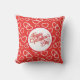 Este travesseiro decorativo é mostrado em cores vermelhas e brancas com um impressão cardíaco de Dias de os namorados festivos fofinhos. Personalize este item ou apenas o comprar como está. Imagem do stock