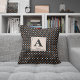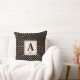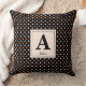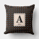 Este travesseiro de decoração de Halloween apresenta um padrão de polka branca e laranja bonitinha com uma cor preta de fundo. pode ser personalizado para todas as fotos e monogramas.