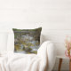Travesseiro decorativo com água com movimento-borrão em uma angra rochosa em uma floresta em Noruega com uma árvore caída como uma ponte sobre ela.