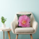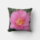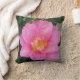 Este travesseiro decorativo apresenta um trecho vívido de um florescimento de uma camélia rosa.