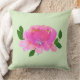 Pensão cor-de-rosa brilhante sobre fundo verde-primavera. Este travesseiro floral fresco dá uma sensação de verão o ano todo!