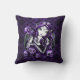 Travesseiro decorativo GRANDE feericamente de 20 polegadas do crânio roxo gótico da beladona