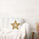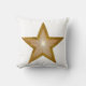 Design moderno com um ouro "brilhante" e uma estrela branca num fundo branco, a escolha do texto no verso. Travesseiro decorativo com um design personalizável para você personalizar com seu próprio texto, imagens e ideias. Esta é uma imagem de arte digital criada usando fotografias originais e técnicas digitais e impressa em tecido, ela não brilha ou contém faíscas reais.