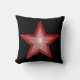 Design moderno com uma estrela vermelha e branca "brilhante" num fundo preto, a escolha do texto no verso. Travesseiro decorativo com um design personalizável para você personalizar com seu próprio texto, imagens e ideias. Esta é uma imagem de arte digital criada usando fotografias originais e técnicas digitais e impressa em tecido, ela não brilha ou contém faíscas reais.