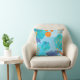 Este travesseiro modelado da aguarela abstrato bonito com espirra de azul e os hexágonos alaranjados e as listras, fazem uma adição bonita à sala dos miúdos.