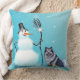 Travesseiro feliz do boneco de neve e do keeshond