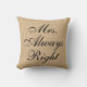 Travesseiro decorativo chique da textura de serapilheira de matéria têxtil das canvas rústicas da juta da Sra. Sempre Direito Falso Linho. "Sra. Sempre Direito" do roteiro do "Sr. Direito e Sra. Sempre Direito" para a noiva ou para ela. Clique "PERSONALIZAM-NO" botão para editar para adicionar seu próprio texto para fazer um produto original para sua casa ou para o Sr. e a Sra. casal do casamento. Excelente para o presente do chá de panela/casamento, presente do housewarming, presente de Natal, para a família nova ou para seu presente de aniversário. Faz um grande presente para todas as ocasiões.