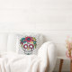 Adoce o crânio com flores coloridas em um travesseiro. Dia da decoração inoperante. Personalize com seu próprio texto.