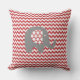 Travesseiro exterior com faixas de diafragma vermelho-claro e branco com elefante de cinza com orelhas de padrão vermelho e branco.