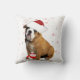 Travesseiro do feriado do Natal do buldogue, presente do divertimento para o amante dos animais, um filhote de cachorro bonito do buldogue em seu chapéu do feriado e seu boneco de neve do brinquedo