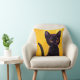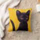 Um gato preto pequeno com os olhos grandes do ouro que situam em um fundo amarelo brilhante é caracterizado neste travesseiro personalizable. Escolha o travesseiro ele real ou adicione um nome ou um provérbio à parte dianteira ou à parte traseira do travesseiro em sua escolha do estilo de pia batismal e colora-os.