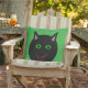 Este incrível travesseiro vibrante ao ar livre apresenta um gato preto com orelhas pontiagudas, olhos verdes brilhantes e um sorriso vermelho sorridente. Este gatinho assustador é perfeito para o Halloween ou para amantes de gatos.