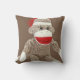 as máscaras do cacau marrons e do vermelho são caracterizadas neste travesseiro do macaco da peúga. Personalize-o com um nome em sua escolha da pia batismal e da cor ou deixe-lhe a planície,