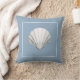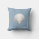 Travesseiro decorativo temático náutico com casca branca sobre fundo azul claro Ver todos os designs travesseiros coordenadores nos Estúdios Sandy Feet.