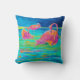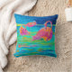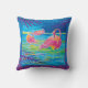 Uma pintura original da aguarela decora este travesseiro de três flamingos.
