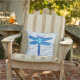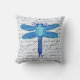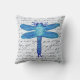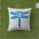 Uma libélula azul cintilante contra um fundo de texto faz um travesseiro adorável para o seu espaço de vida ao ar livre! Escolha o tecido ao ar livre para a cadeira de varanda ou outro local de vida externo. Também disponível em tecidos para interiores. Reproduzida a partir da minha cor de água original.