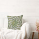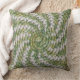 Imagem espiral em crochê. Um lado com verduras variadas como fundo e branco como os braços espirais radiando do centro. O segundo lado tem fundo branco com a espiral verde.