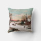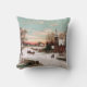 Travesseiro com a pintura de Andrew Melrose da Véspera de Natal no início dos anos 1900, fora de uma pequena igreja de neve.