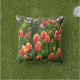 Esta é uma foto que original eu tomei das tulipas no início da manhã ainda com gotejamento do orvalho. Eu espero que você aprecia este travesseiro em seu espaço exterior.