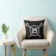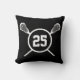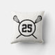 Travesseiro decorativo preto e branco, personalizado do número do jogador do lacrosse. Design branco no fundo preto em um lado, design preto reverso no fundo branco no outro lado. Circunde e cruzou o quadro das varas do lacrosse com seu número particularizado para dentro. Artigos do costume do jogador e da equipe do Lacrosse.
