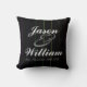 Comemore o amor e o orgulho. Um travesseiro que caracteriza um teste padrão e pontos das riscas do arco-íris para o nome do casal junto com um lugar para o casamento ou o primeiro aniversário da data.