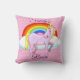 Um unicórnio feliz compo este travesseiro do divertimento. Lance-o sobre para um olhar diferente! Customizável assim você pode adicionar seu próprio texto e mudar a cor do fundo. Este design está disponível em circularmente e travesseiros do quadrado. Faz um grande presente!