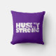 Este travesseiro decorativo de destaque é mostrado com um Rouco Forte. As cores são roxas e brancas. Personalize este item ou comprar como está. Impressão licenciado