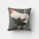 Um elegante e divertido travesseiro francês de frango em grisalhos negros com sotaques vermelhos. designs à base de Vintage com elementos efêmeros.