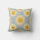 Este travesseiro é um travesseiro de girassol com um tema de felicidade. A principal cor utilizada são os girassóis amarelos sobre fundo azul-céu, dando uma sensação quente. Ele vai bem na sala de estar e também é bom para o quarto de uma criança.