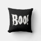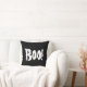 Travesseiro do Halloween Boo mostrado em preto/branco na frente e preto no verso. Personalize este item ou comprar como está.