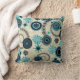 Teals, blues e preto em um travesseiro branco