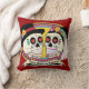 Casal mexicano do casamento do crânio do açúcar. A escrita na bandeira está em inglês e diz que "o amor verdadeiro é para sempre". Este design vem em versões inglesas e espanholas, e há umas cargas de outros produtos para seu tema do casamento ou do partido de Diâmetro de los Muertos! Você pode mudar a cor do fundo e adicionar o texto para personalizar este travesseiro. Faz um grande presente de casamento! Veja nossa versão espanhola demasiado!