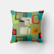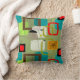 Travesseiro moderno do meio século, design abstrato em preto, em vermelho, a cerceta e o cinza em um fundo da verde azeitona. Aperfeiçoe para toda a decoração moderna do meio século.