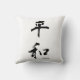 Caligrafia japonesa por "Paz" em um travesseiro decorativo que pode ser qualquer cor que você quiser. Você também pode personalizar o tamanho e o tecido. Perfeito para quartos com decoração asiática.