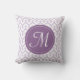 Um teste padrão branco em um travesseiro do lilac com sua inicial.