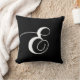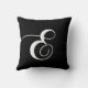 Travesseiro branco preto do monograma E. Esta pia batismal elegante do redemoinho transforma sua inicial do monograma em um travesseiro monogrammed elegante do desenhista. Excelente para seu quarto, cadeira favorita, como a decoração do divertimento em sua sala de família ou a adição decorativa formal a sua sala de visitas. Personalize com sua cor do fundo. Para outras letras do alfabeto contacte por favor MONOGRAMGALLERY. Elke Clarke©