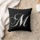 Travesseiro branco preto do monograma M. Esta pia batismal elegante do redemoinho transforma sua inicial do monograma em um travesseiro monogrammed elegante do desenhista. Excelente para seu quarto, cadeira favorita, como a decoração do divertimento em sua sala de família ou a adição decorativa formal a sua sala de visitas. Personalize com sua cor do fundo. Para outras letras do alfabeto contacte por favor MONOGRAMGALLERY. Elke Clarke©