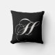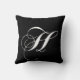 Travesseiro branco preto do monograma H. Esta pia batismal elegante do redemoinho transforma sua inicial do monograma em um travesseiro monogrammed elegante do desenhista. Excelente para seu quarto, cadeira favorita, como a decoração do divertimento em sua sala de família ou a adição decorativa formal a sua sala de visitas. Personalize com sua cor do fundo. Para outras letras do alfabeto contacte por favor MONOGRAMGALLERY. Elke Clarke©
