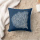 Travesseiro temático náutico com coral branco do fã no fundo dos azuis marinhos