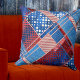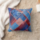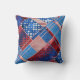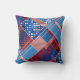 O travesseiro contemporâneo com um design abstrato inspirado nos EUA, com jeans azuis e padrões lúdicos, vermelhos e brancos. O padrão também pode ser girado ou dimensionado.