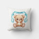 Crie um bom travesseiro para a decoração do berçário. O travesseiro apresenta um ursinho de pelúcia bonito e adorável com fita azul. A parte traseira do travesseiro apresenta bolinhas azuis giras. Personalize o travesseiro com o nome do seu bebê. Inclua este excelente no seu berçário.