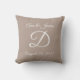 Presente de casamento perfeito para os recém-casados. Comemore o dia especial deles com os nomes monogramados, data e inicial do sobrenome. Também seria um presente de aniversário perfeito. É reversível para um travesseiro marrom.