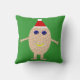 Esta travesseiro incrível mostra uma engraçada caricatura de um ovo com braços e pernas. O ovo tem braços e pernas e uma pequena fenda na cabeça expondo o dentro branco. Tem olhos azuis com um aluno preto e um sorriso grande onde a gema do ovo pode ser vista. A casca do ovo parece áspera. Este ovo de Natal está vestindo um chapéu de Papai Noel pronto para festas nesta temporada de festas.